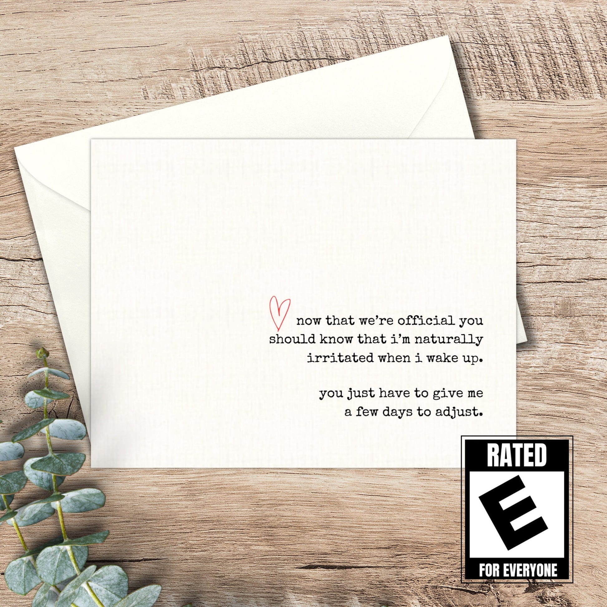 humorous card for boyfriend / girlfriend / snarky card / sarcastic card / new relationship card / morning person / funny card for new man